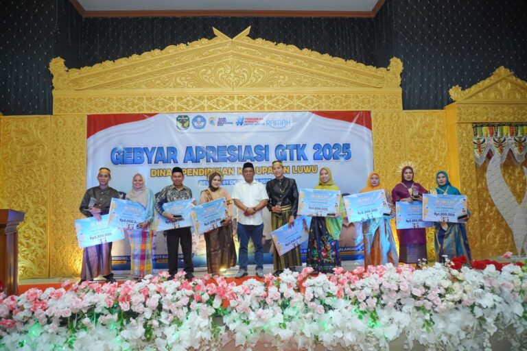 Luwu, Aletheia.id – Pemerintah Kabupaten Luwu melalui Dinas Pendidikan menggelar Gebyar Apresiasi Guru dan Tenaga Kependidikan (GTK) 2025 di Gedung Esse Gallareng, Senin malam, 1 Desember 2025.