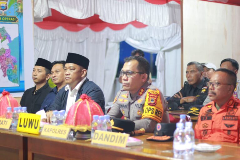Luwu, Aletheia.id – Bupati Luwu Patahudding mengikuti Rapat Koordinasi Nasional (Rakornas) Pengendalian Keamanan dan Ketertiban Masyarakat (Kamtibmas) secara virtual dari Pos Terpadu Operasi Ketupat Belopa, Sulawesi Selatan, Jumat malam, 20 Maret 2026.