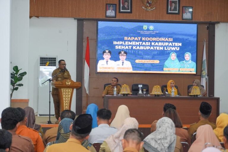 Luwu, Aletheia.id – Bupati Luwu Patahudding membuka rapat koordinasi penguatan forum dan implementasi Kabupaten Sehat di Rumah Jabatan Bupati Luwu, Senin, 20 April 2026. Pemerintah daerah menargetkan peningkatan capaian menuju penghargaan Swasti Saba Wistara Paripurna pada 2027.